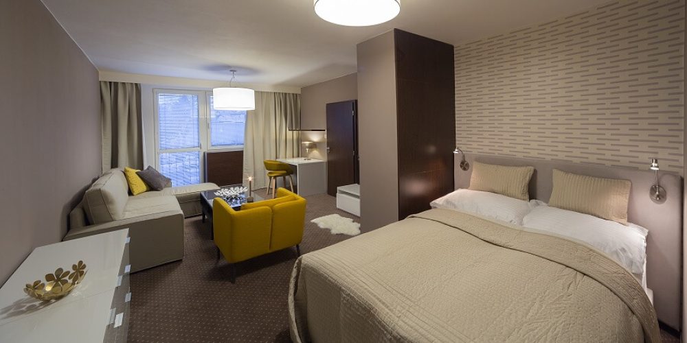 Apartmán o dispozici 1+1 má plochu 24 m2. Apartmány COMFORT jsou nově zrekonstruované, moderně zařízené a vybavené televizí a další nadstandardní výbavou. K dispozici Wi-Fi připojení na internet 100Mbit. V prostorných koupelnách je sprchový kout, umyvadlo, WC. Díky rozdělení spací části vybavené 3 lůžky – americkými postelemi a obývací části s možností až 2 přistýlek […]